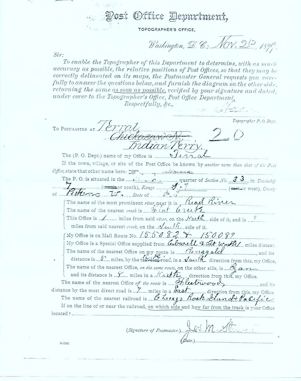 Post Office Dept. dated Nov. 1899 signed by Joseph M. Stewart,