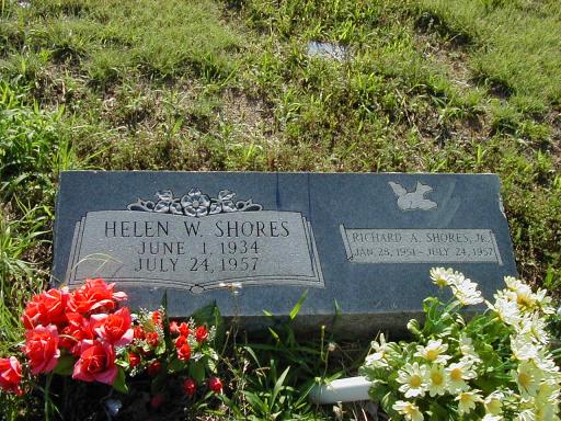 Shores, Helen W and Richard A Jr - Mother and son. Both died on the same date.