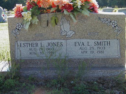 Smith, Eva L - Headstone for both Esther Jones and Eva L Smith. Twin sisters.