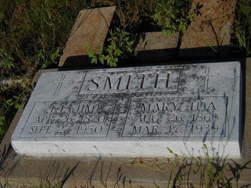 Smith, Mary Emily and Harty E - Married Oct. 21, 1923. Buried next to Marieola Smith.