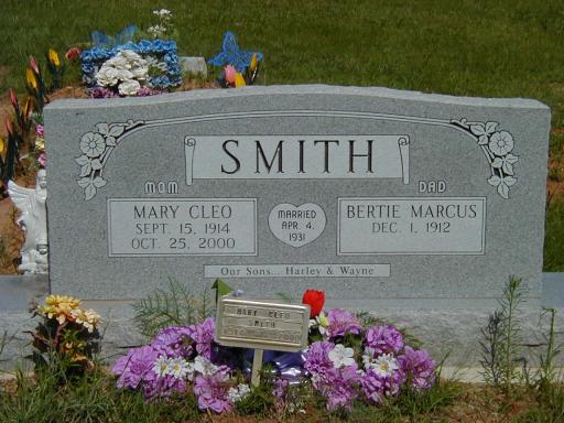 Smith, Mary Cleo - Wife of Bertie Marcus Smith and mother of Harley and Wayne Smith.