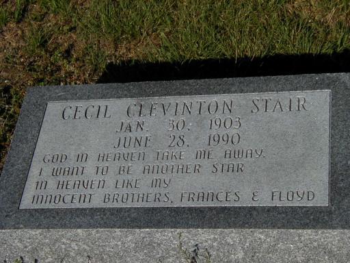 Stair, Cecil Clevinton - 'God in heaven take me away, I want to be another star in heaven like my innocent brothers, Frances and Floyd.'