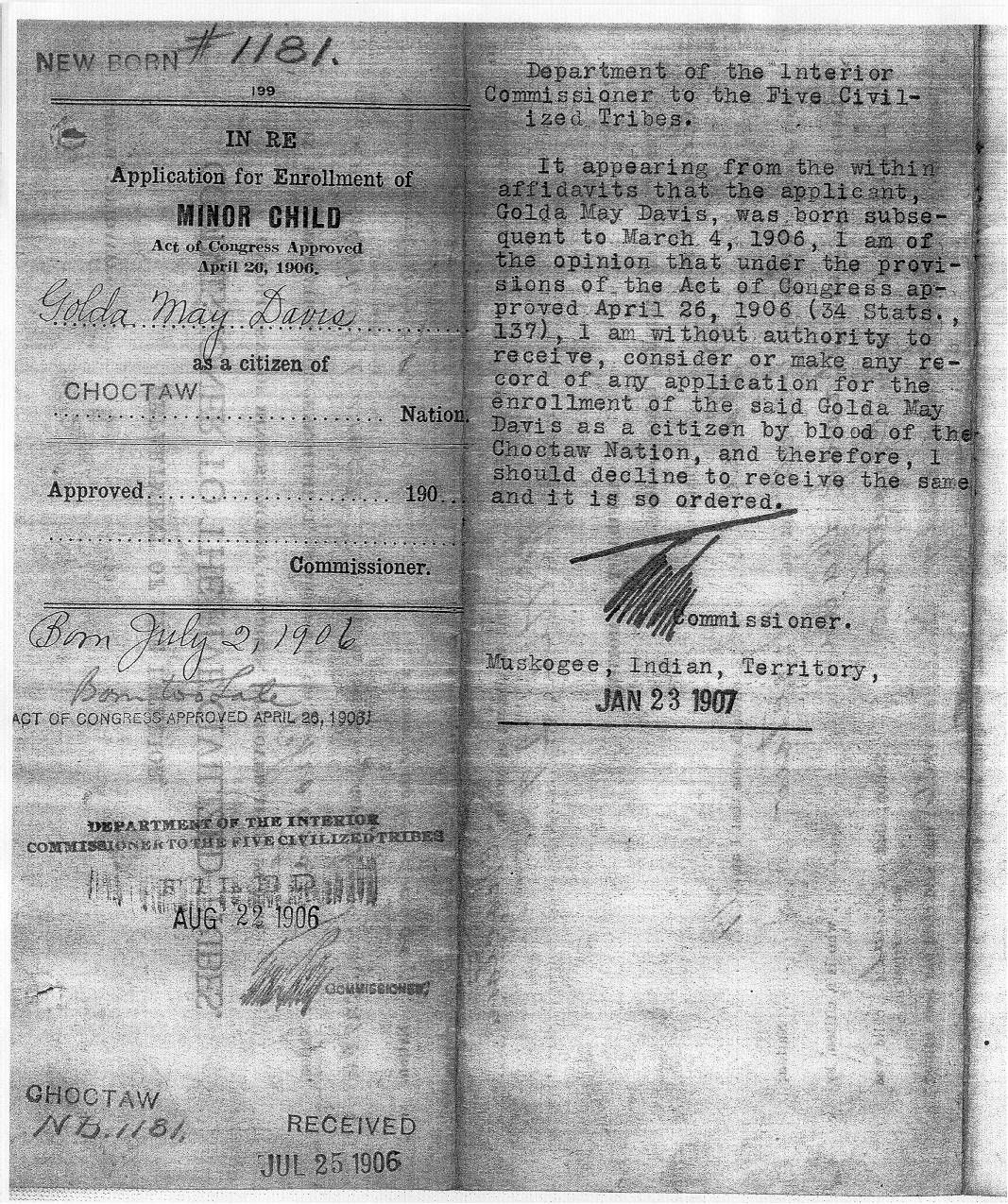 This is Goldia May Davis Ramay, she was born 2 July 1906 in
