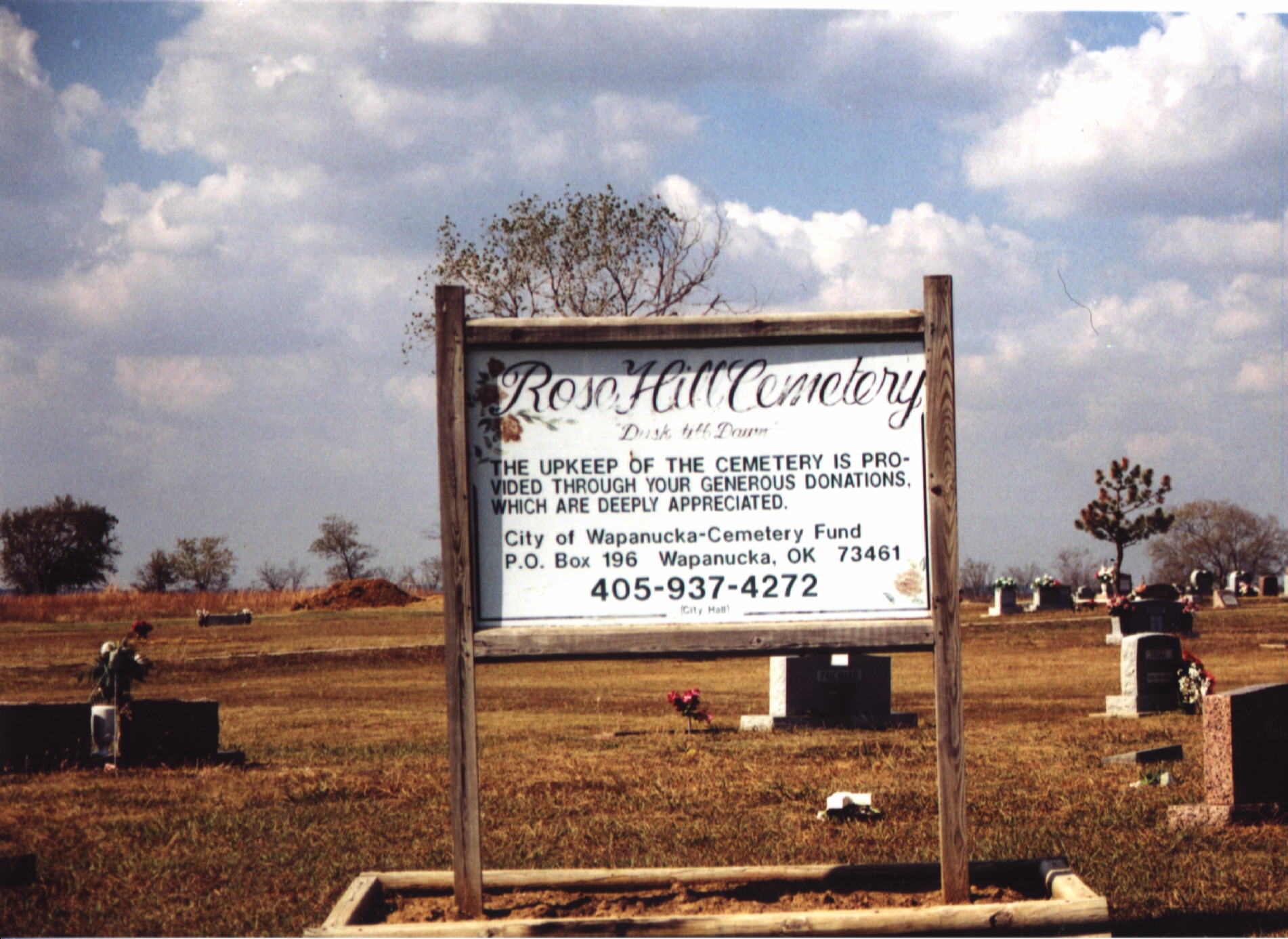 Entrance sign for Rose Hill Cemetery, Wapanucka, OK