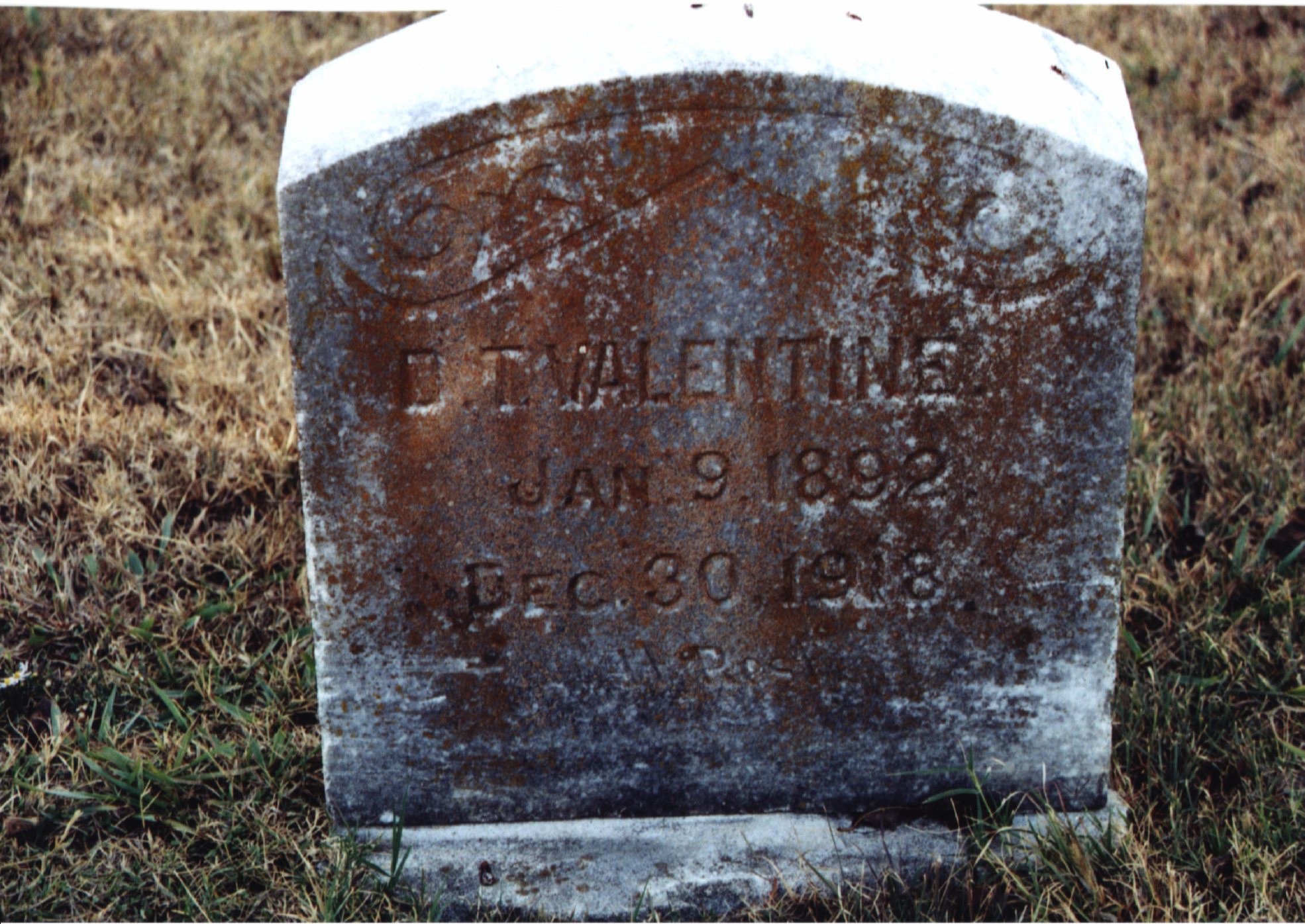 Headstone of DeWitt T. Valentine – Rose Hill Cemetery, Wapanucka, OK