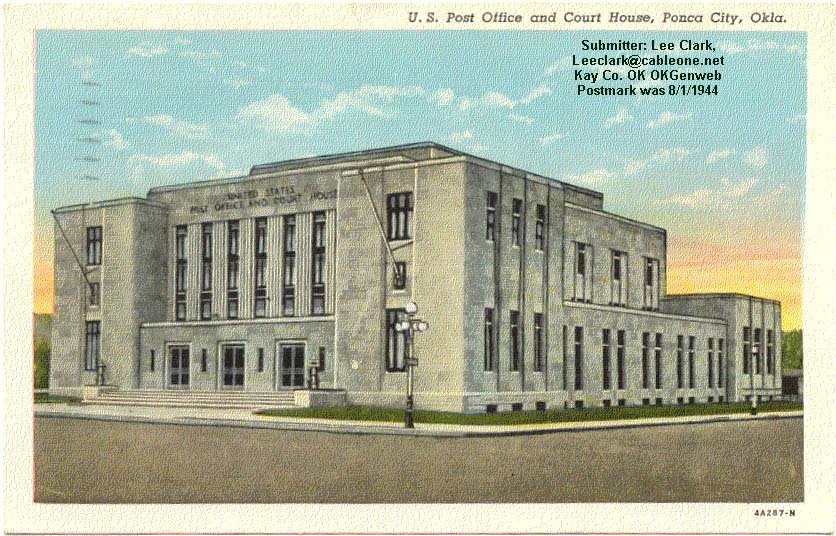 Right: Ponca City Post Office, circa 1944 submitted by Lee Clark (copyright unknown).
