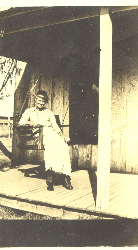 ![]() Mollie Daniel Thomas sitting on her front porch on a ranch in Red Oak. |