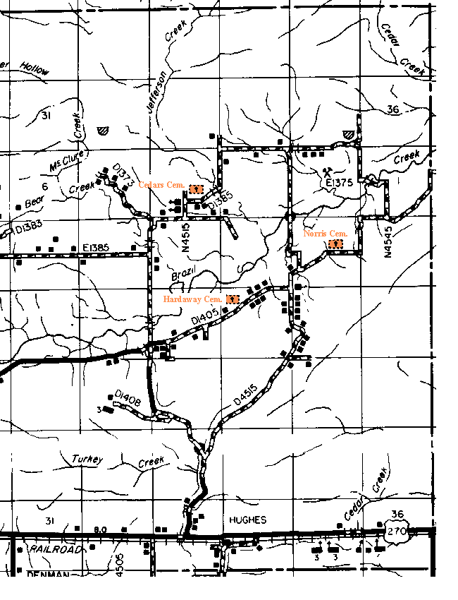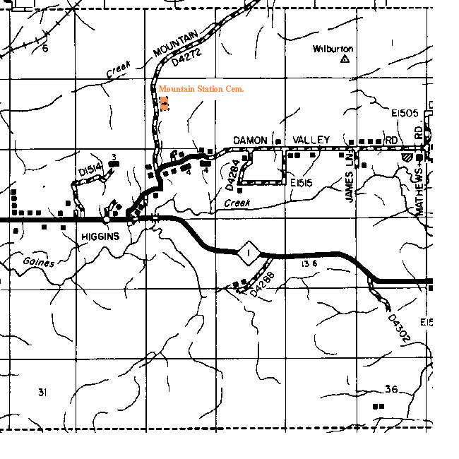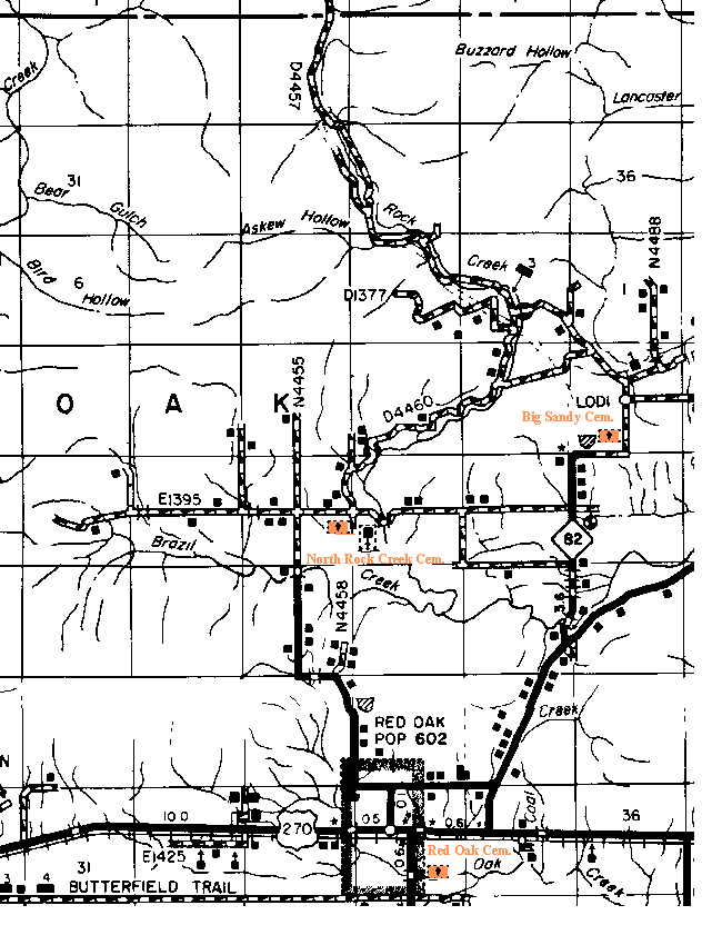 Big Sandy, North Rock Creek, Red Oak Cemetery Map