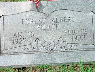 You found this information at http://www.rootsweb.com/~okleflor/cemetery/fairhill/pages/pierce-forest.htm