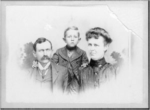 John Adams West, Fred West, and Ida Milligan Hall West. |