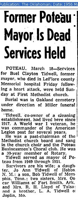 Tidwell served as mayor of Poteau from 1949 through 1951.