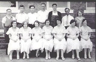 Panama High School, Senior Class 1932 TOP ROW - Eli Duncan, John Lindsay Barnes, Eugene Welch, Marlin Orvalle Miser, Huburt Edward Freeman, Kresse Charles Sampson, Sylvia Ruth Riggs BOTTOM ROW -- Imogene McLellan, Cora Pearl Wilson, Frances Amega Phillips, Chrystal Miriom Walker, Neval Lucille Earp, Leatha Elmer Earp, Daphna McLellan NOT PICTURED--Eugene Eidschune. |