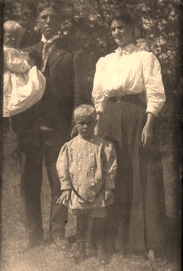Melz Clinton Brown with first wife Madge Louise (Tainter) Brown, married Sept. 2, 1903, with oldest child, son Vincent Allison Brown, b: Aug. 21, 1904 in Kalamazoo, Mi, and youngest son Kenneth Willard Brown, B: ?, MIA in WWII.
