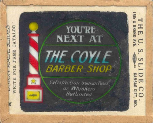 in the 1920's - 30's, advertising the Coyle Barber Shop.