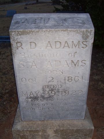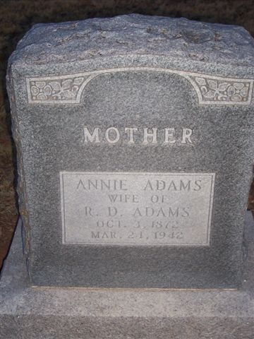 Annie - b. 3 oct 1872 - d. 21 mar 1942, wife of R. D. Adams