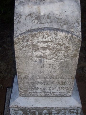 H. - b. 23 jun 1891 - d. 26 dec 1905, son of R. D. & S. A. Adams