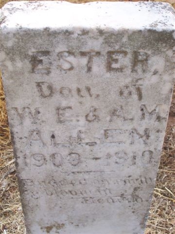 Ester - b. 1909 - d. 1910, dau. of W. E. & A. M. Allen