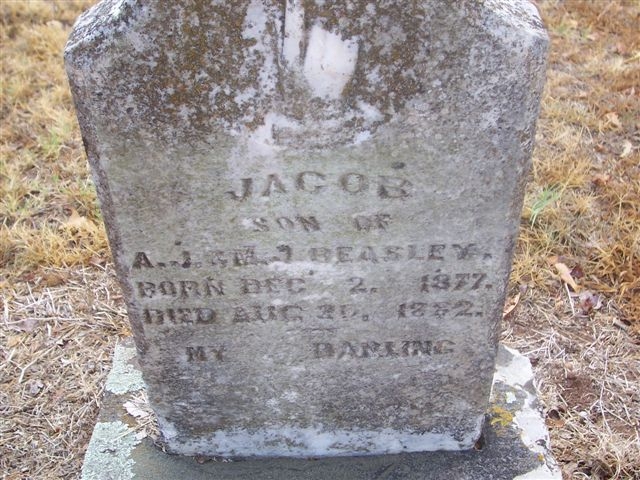 Jacob 2 dec 1877 - d. 20 aug 1882, son of A. J. & M. J. Beasley