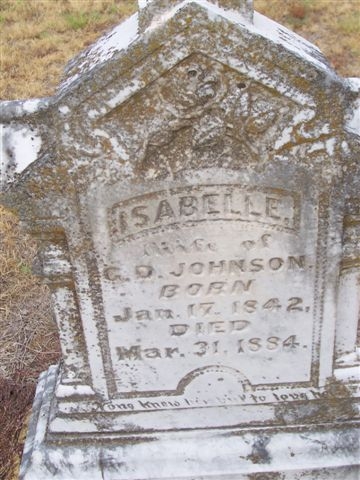 Isabelle - b. 17 jan 1842 - d. 31 mar 1884, wife of C. D. Johnson