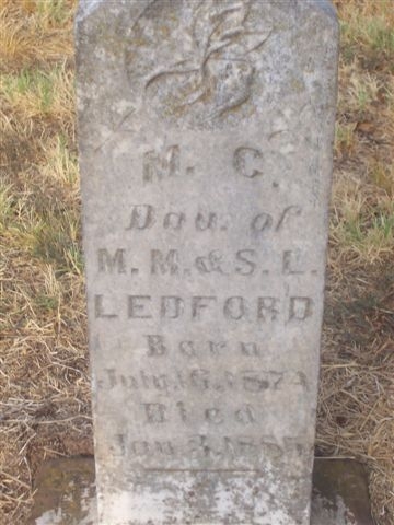 G. - b. 16 jul 1874 - d. 3 jan 1885, dau. of M. M. & S. L. Ledford