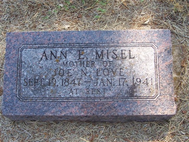 E. - b. 19 sep 1847 - d. 17 jan 1941, mother of Joe N. Love