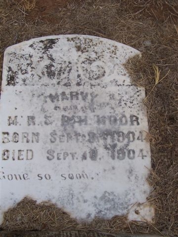 - b. 8 sep 1904 - d. 10 sep 1904, dau of M. R. & B. H. Moor