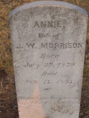 Annie - b.29 jul 1870 - d. 17 feb 1897, wife of J. W.