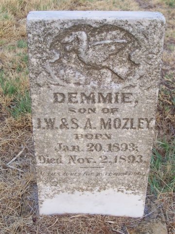 Demmie - b. 20 jan 1893 - d. 2 nov 1893, son of I. W. & S. A. Mozley