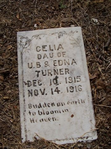 Celia - b. 10 dec 1915 - d, 14 nov 1916, dau. of U. B. & Edna Turner