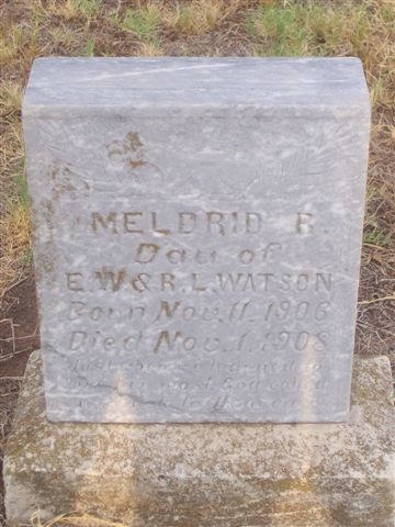 Meldrid B. - 11 nov 1906 - d. 1 nov 1908, dau. of E. W. & R. L. Watson