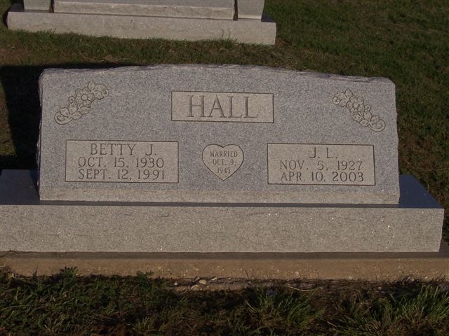 Hall, J. L. - b. 5 nov 1927 - d. 10 apr 2003 (DS w/ Betty)