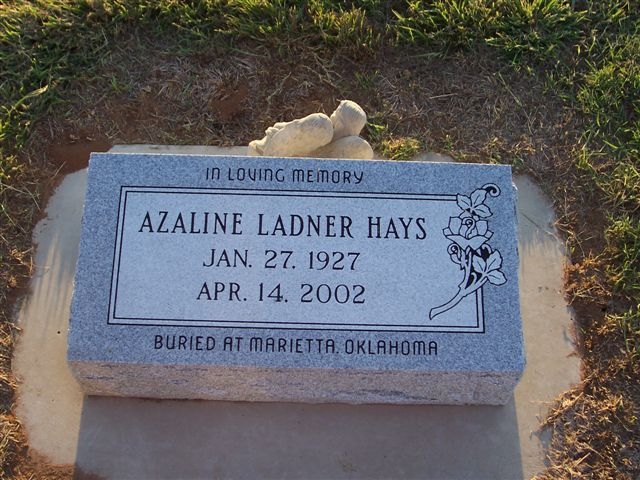 Hays. Azaline Ladner - b. 27 jan 1927 - d. 14 apr 2002, buried at Marietta, OK.
