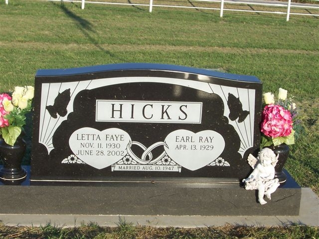 Hicks, Letta Faye - b. 11 nov 1930 - d. 28 jun 2002 (DS w/ Earl Ray)