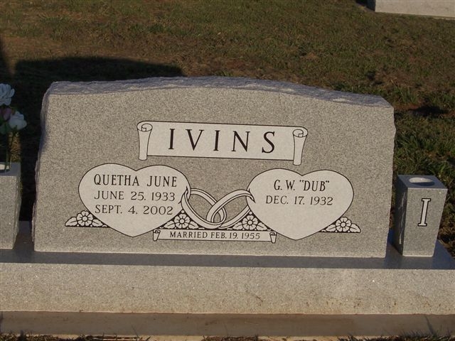Ivins, Quetha June - b. 25 jun 1933 - d. 4 sep 2002 (DS w/ G. W.)