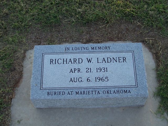 Ladner, Richard W. - b. 21 apr 1931 - d. 6 aug 1965, buried at Marietta, OK.