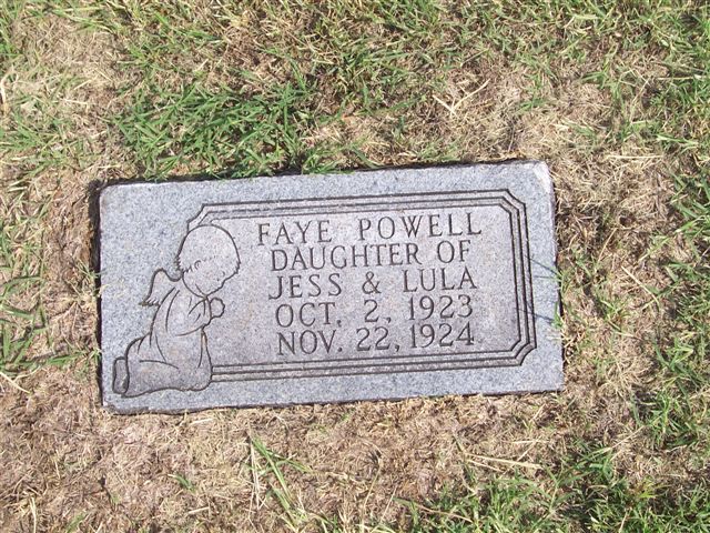 Powell, Faye - b. 2 oct 1923 - d. 22 nov 1924, Dau. of Jess & Lula