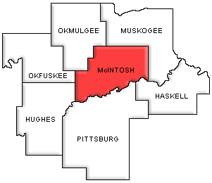 To make this project grow, please submit your information about McIntosh County. I are looking for transcriptions of cemeteries, deeds, federal census (free, slave, mortality, agriculture, veterans...schedules), state census, vital records (marriage, birth, death), court records (county, federal, civil, circuit, probate....), church records (membership lists, baptisms...), prison records, military records (rosters, muster rolls, service records, pension applications...), land records (deeds, land transfers, federal land grants, surveyor's records..), tax records (land, property, state, federal, local....), newspaper articles (obits, marriage & birth announcements, local events...), family histories, biographies, obituaries and etc. that pertains to McIntosh County, Oklahoma - please send them to Shelley Lynch at leeshlynch@gmail.com for inclusion here.