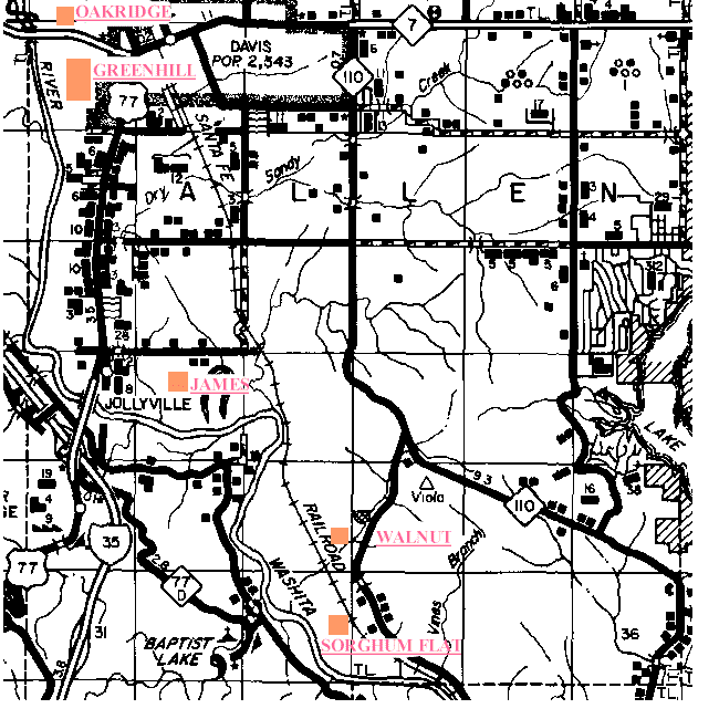 OAK RIDGE - SEC. 6 GREENHILL - SEC. 6 JAMES - SEC. 20 WALNUT CEMETERY - SEC. 28 SORGHUM FLATS - SEC. 33