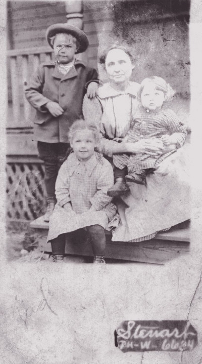 This is a photo of my grandmother, Pearl Elizabeth Myers, born about August, 1883, Ft Worth, Tarrant Co., TX,  and 3 of her children, born in Arbuckle, near Davis OK., taken around 1915, Arbuckle, I.T.