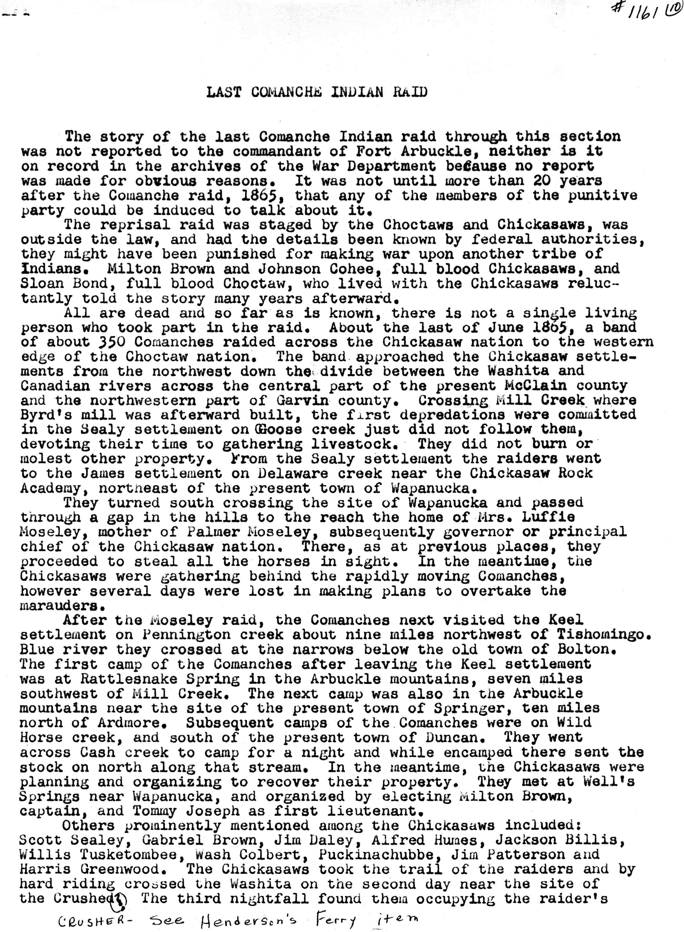 The Last Comanche Raid in the Chickasaw Nation