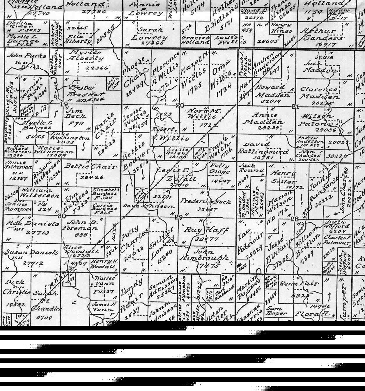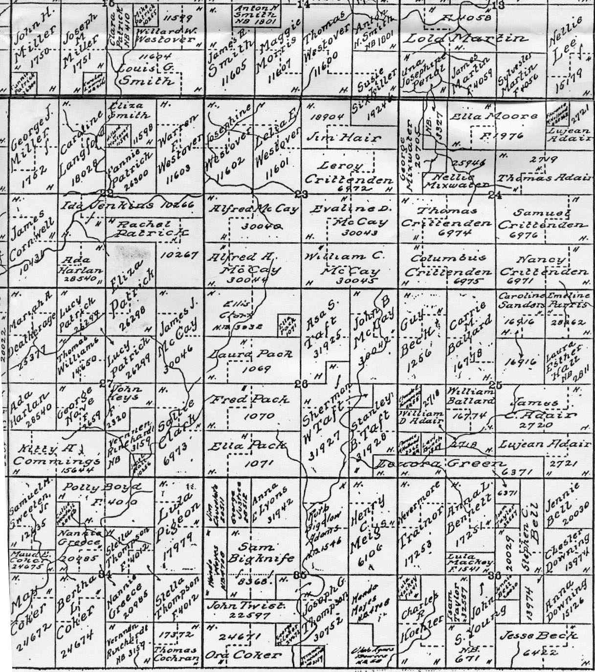 Map of Land Allotments Around Wann, Oklahoma, contributed