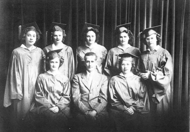 (Pat) Montgomery, Mr.Wm.Cook (Class Sponsor) Claude Stierwalt, Alma