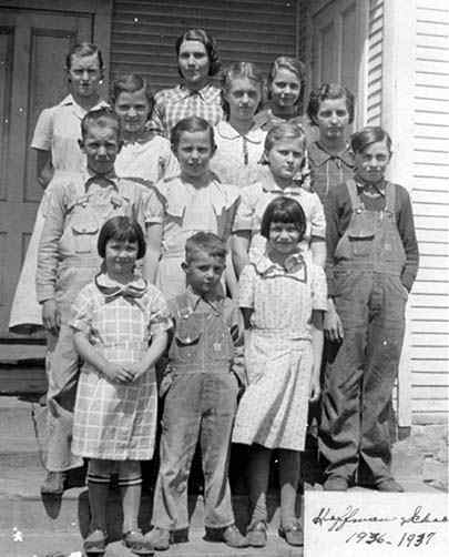 Hoffman School 1936-1937 Esther Hackendorf - Teacher (back row center) Photo courtesy of Mrs. Esther (Hackendorf) Andrews