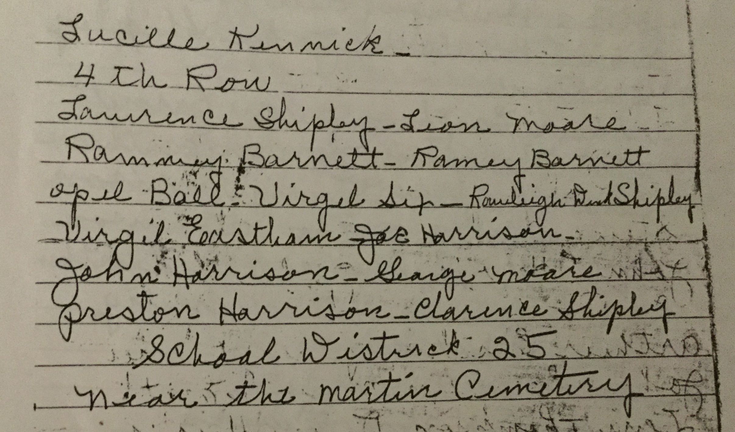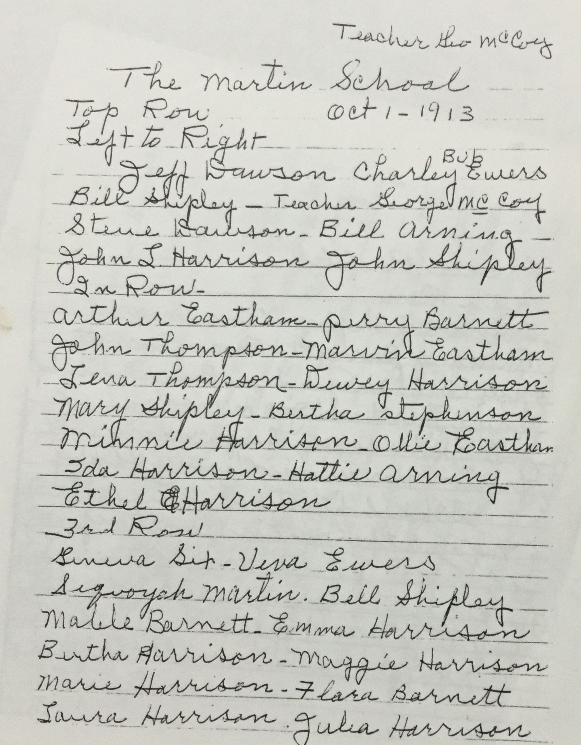 Photo & list of names from Debbie Bass. Submitted by: Sharlee