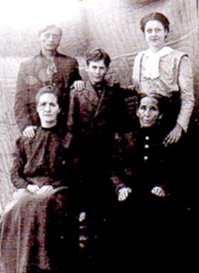 Seated from left to right Permelia Ann Blackwell and Eliza Jane Sessions (More on Sessions) Standing from left to right Leon 'Lonnie' McElroy, Claude McElroy and Odie Hall