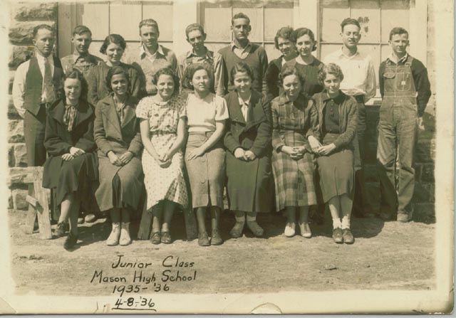 Top row (l to r): Supt. W. Leon Brown, Ted Hunter, Mrs. W. Leon Brown, Reuben Sowder, Howard Deaton, Gilbert Alley, Rita Stockton, Miss Esther Wilborn, Elbie Shannon, Zorns D. Berry.