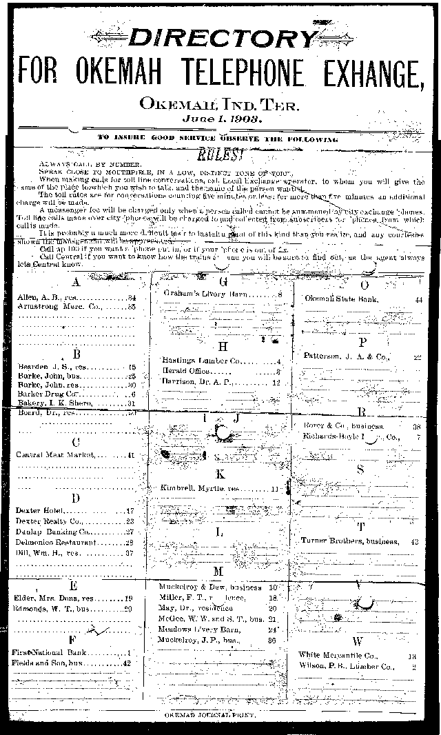 Directory for Okemah Telephone Exchange, Okemah, I.T.