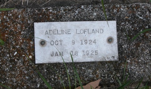 Lofland Adeline, born,Oct. 9- 1924, died, Jan. 18-1925 Gravestone