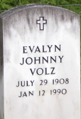 Volz Johnny Evalyn, born, July 29-1908, died, Jan., 12-1990 Gravestone