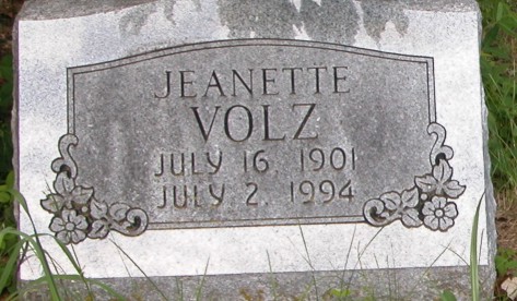 Volz Jeanette, born, July 16-1901, died, July 2-1994 Gravestone